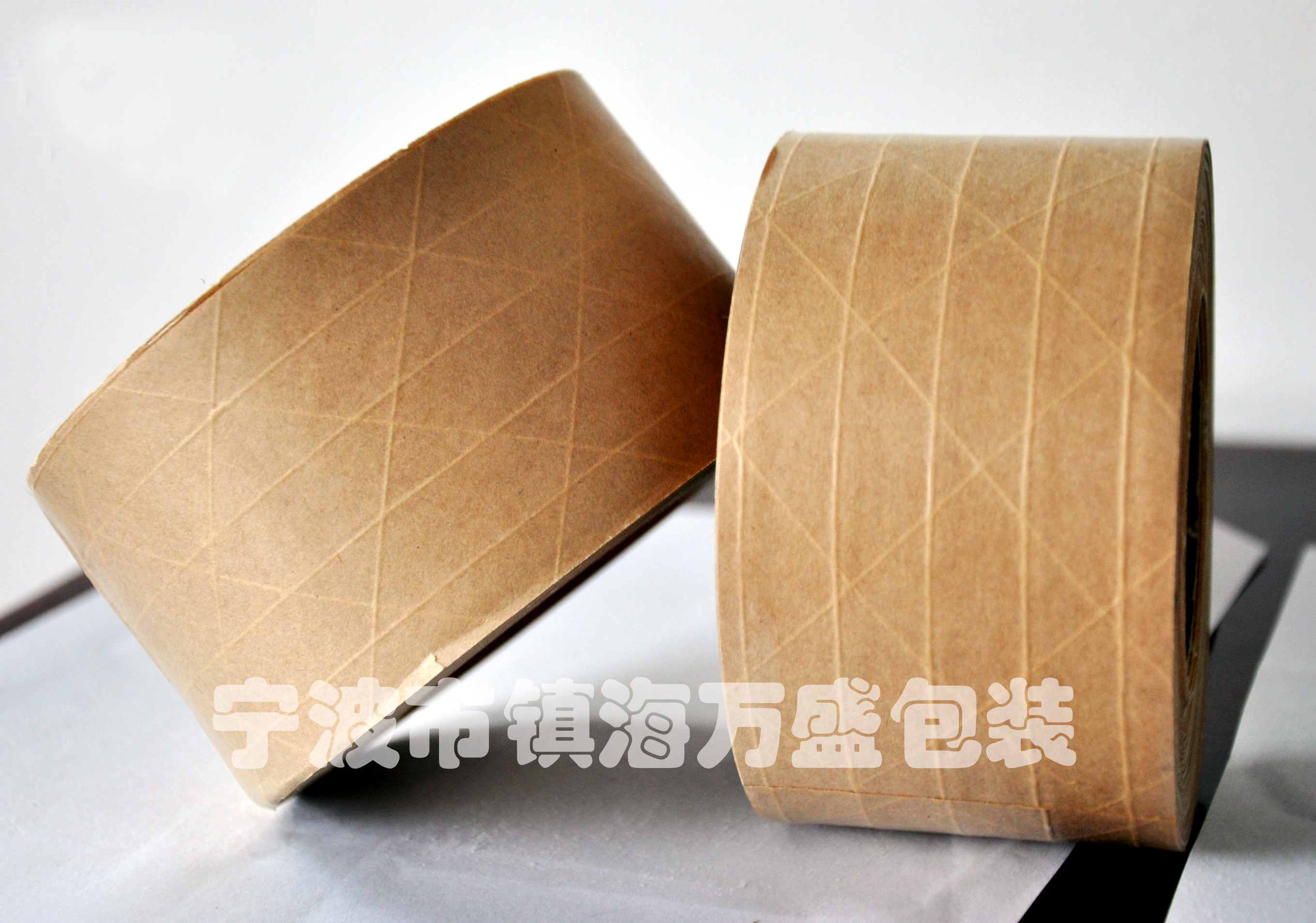 免水牛皮紙膠帶以高強度牛皮紙為基材,涂熱敏膠而成。濕水牛皮紙膠帶以牛皮紙為基材,以變性淀粉為粘合劑制造而成。須濕水后方可產生粘性,其具有可在牛皮紙上書寫之特點。適用于出口紙箱封口或遮蓋紙箱字跡。